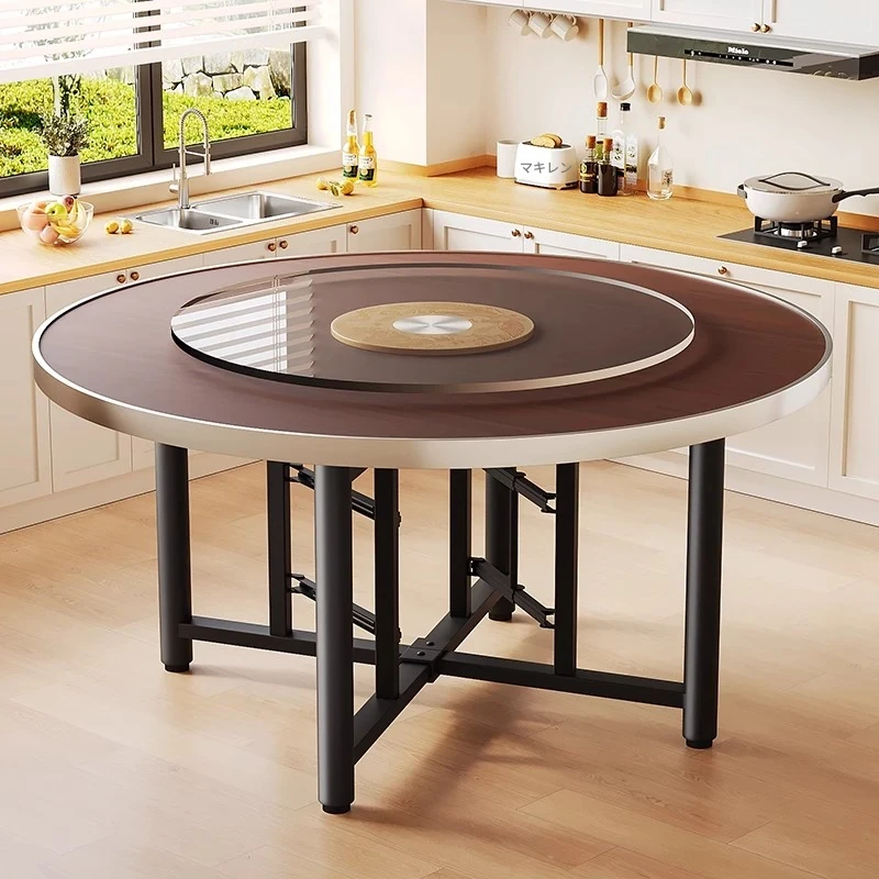 折りたたみ式の大きな無垢材の円形ダイニングテーブルと椅子のセット - 新中式デザインでおしゃれな食卓、家庭用にも最適!回転板付きで便利、商談にもぴったりの一品!