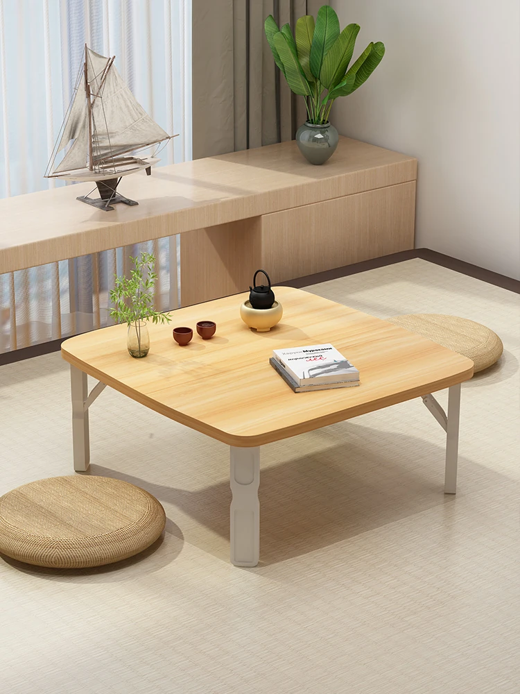 おしゃれな窓辺の小さなテーブル!折りたたみ式の茶卓、カーペットの上にぴったりの低いデザイン。食事や読書に最適なコンパクトなダイニングテーブル、使わない時は簡単に収納!家庭での快適なひとときを演出します。
