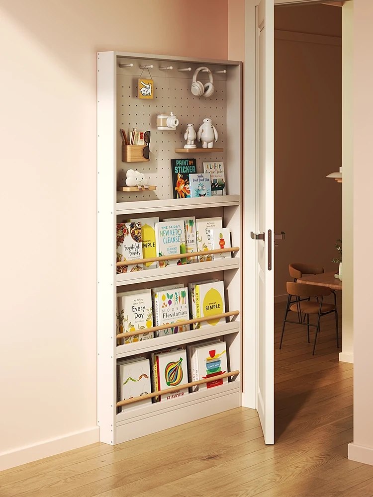 ドア裏収納ラック 超薄型パネル 木製スリム収納 学生向け 多段壁掛け書棚 お菓子ラックに最適!狭いスペースを有効活用して、スッキリ整理整頓!