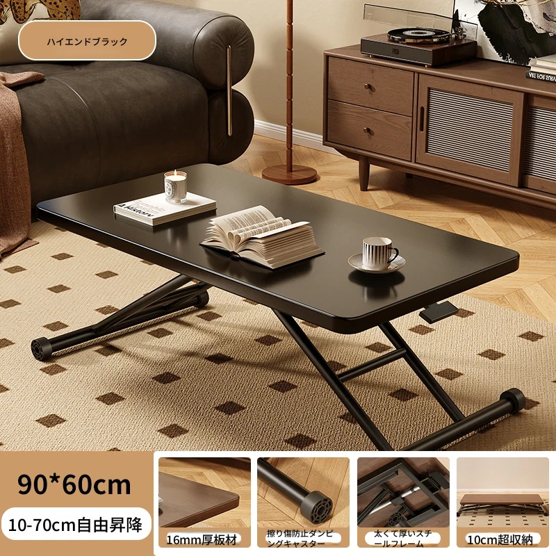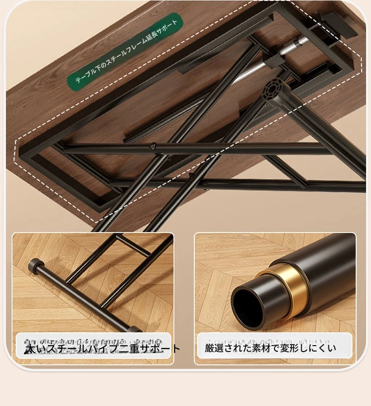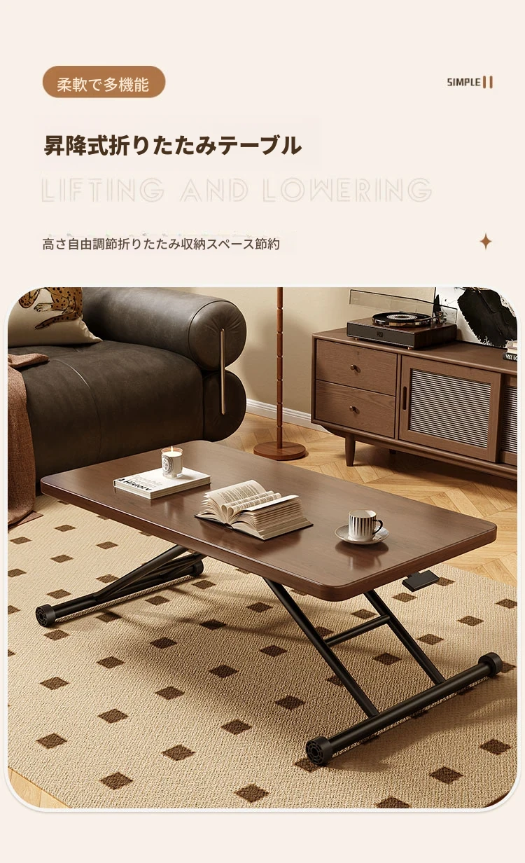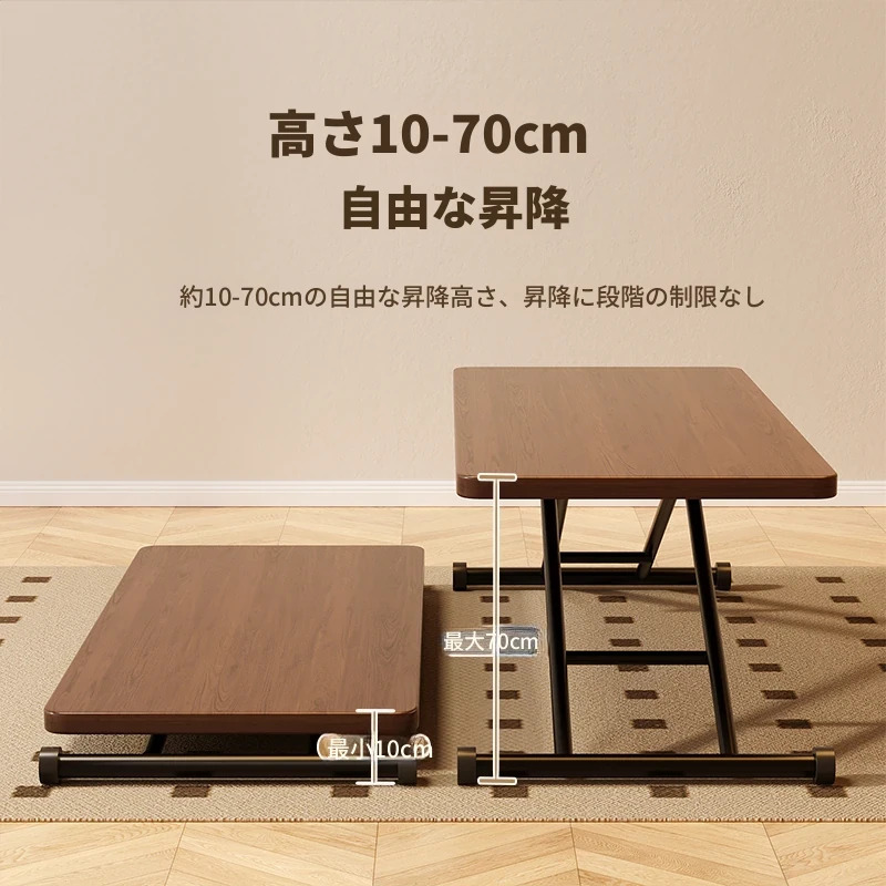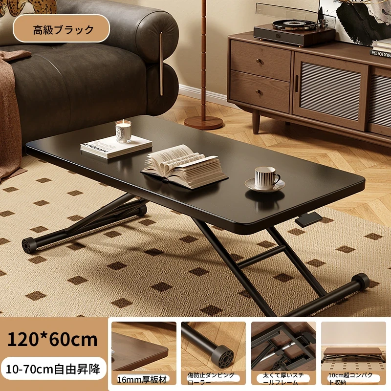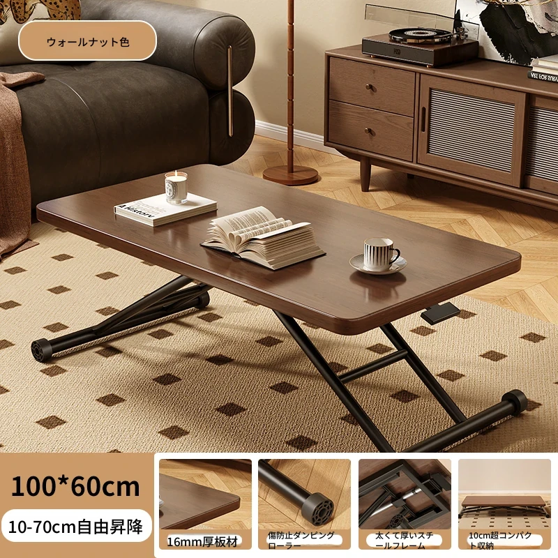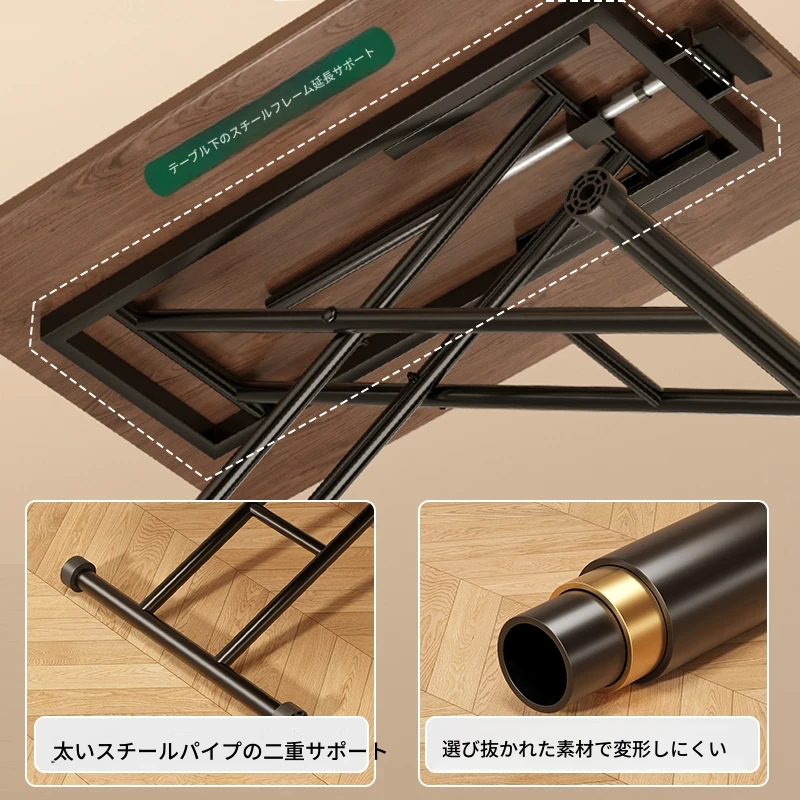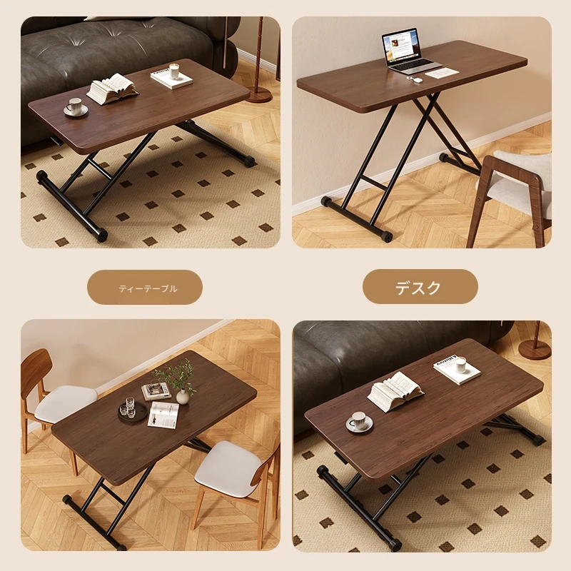 昇降式折りたたみテーブル|家庭用・カフェ風デザイン|ダイニングとデスク両用|シンプルでスタイリッシュなパソコンデスク|スペースを有効活用!