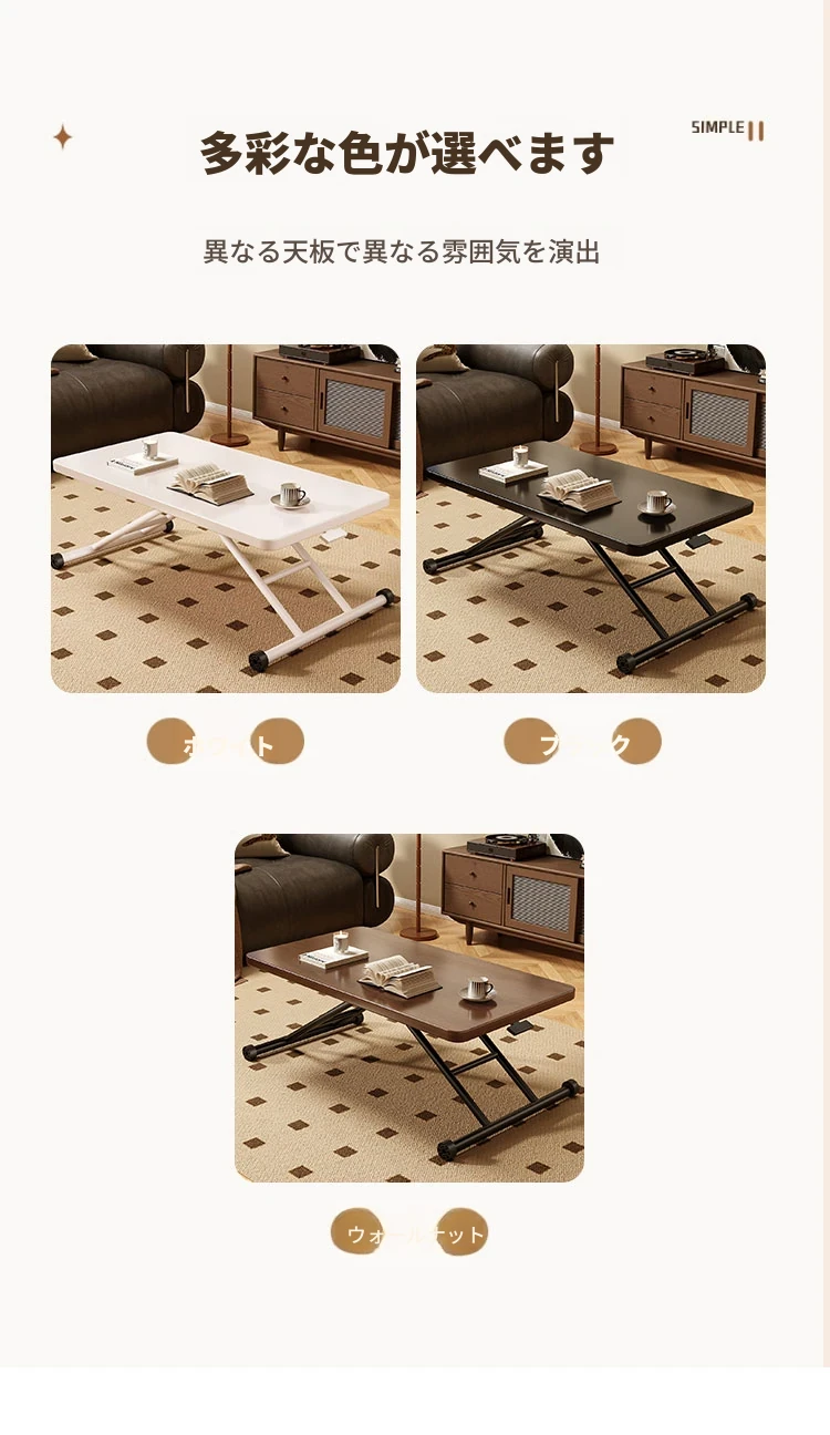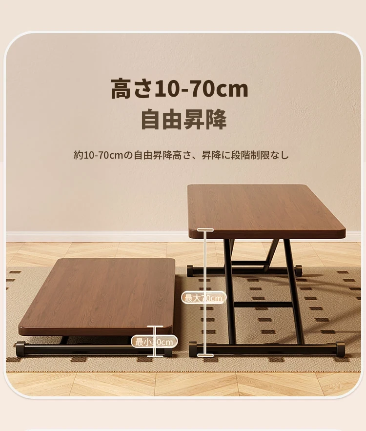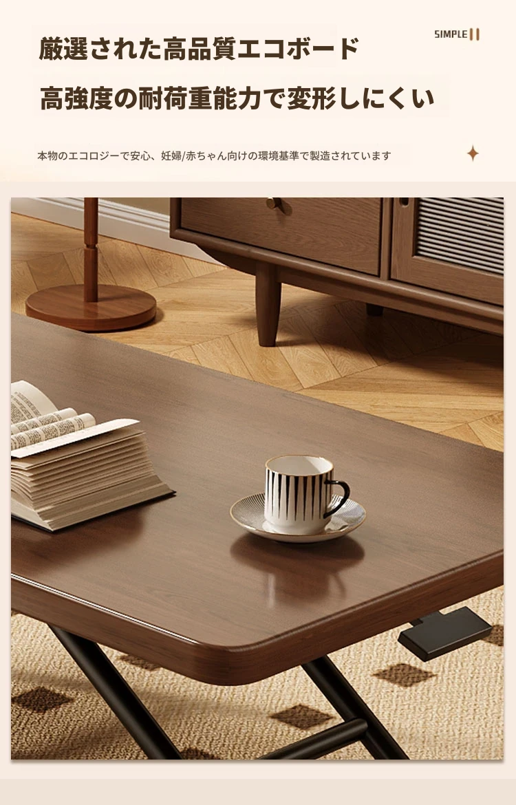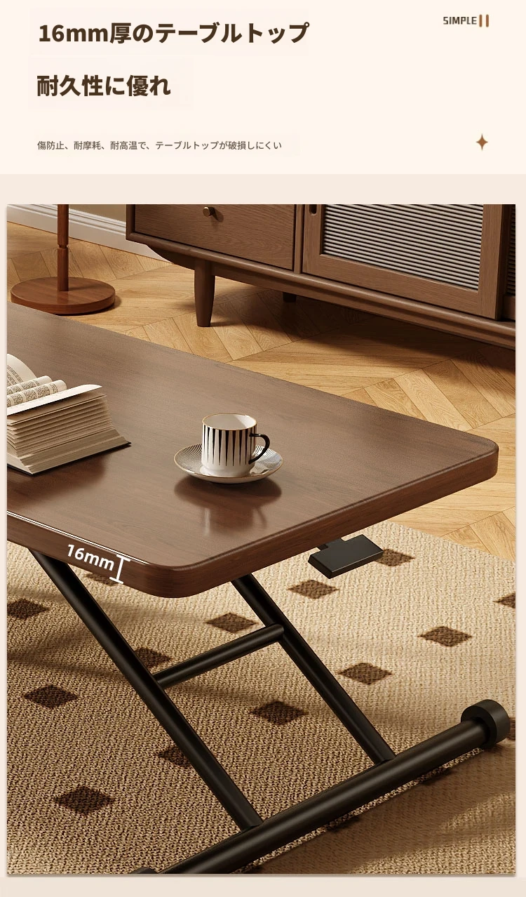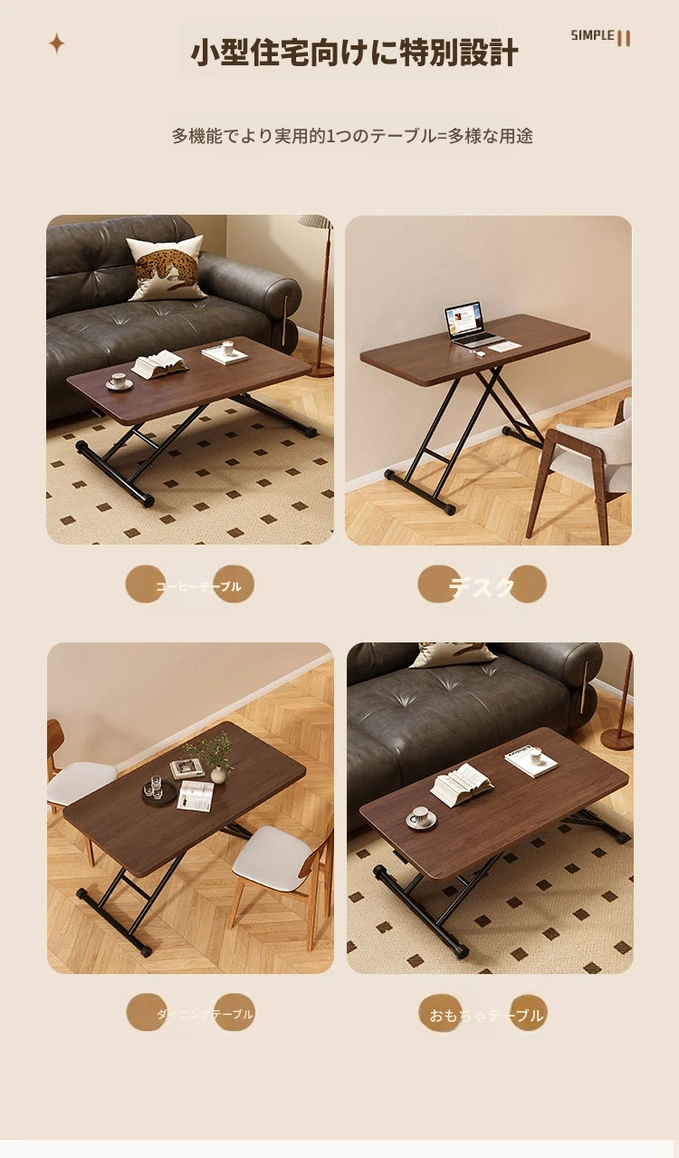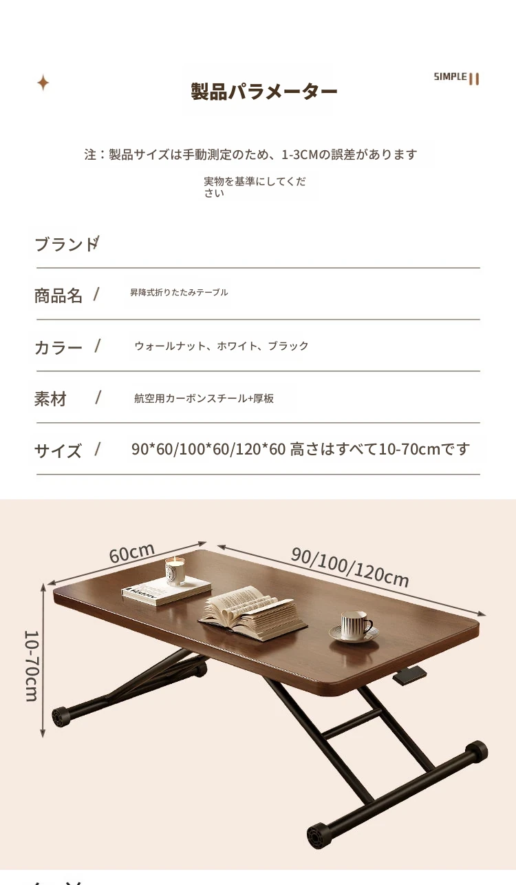 昇降式折りたたみテーブル|家庭用・カフェ風デザイン|ダイニングとデスク両用|シンプルでスタイリッシュなパソコンデスク|スペースを有効活用!