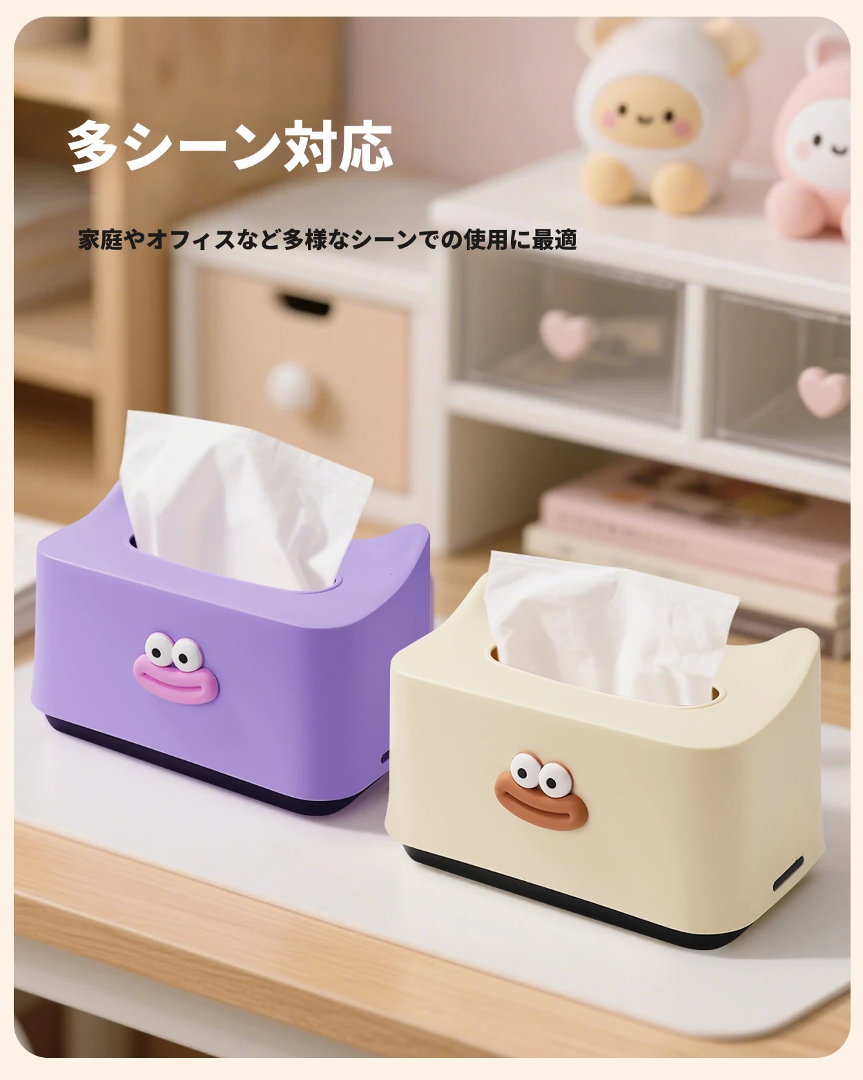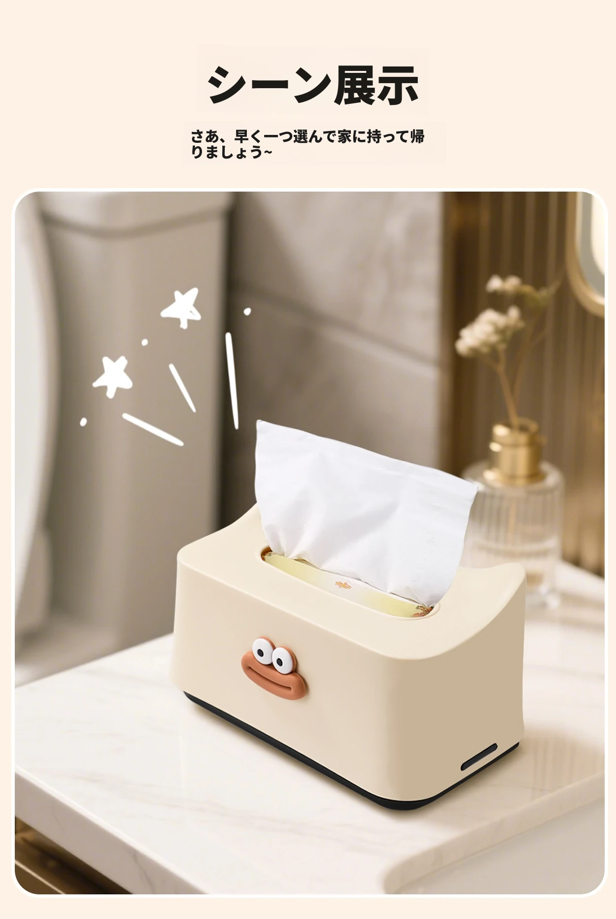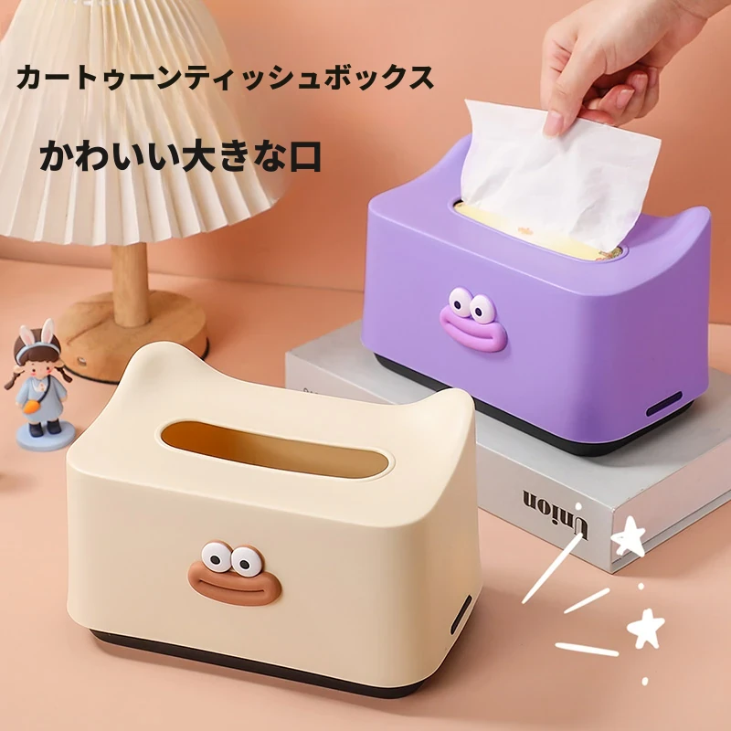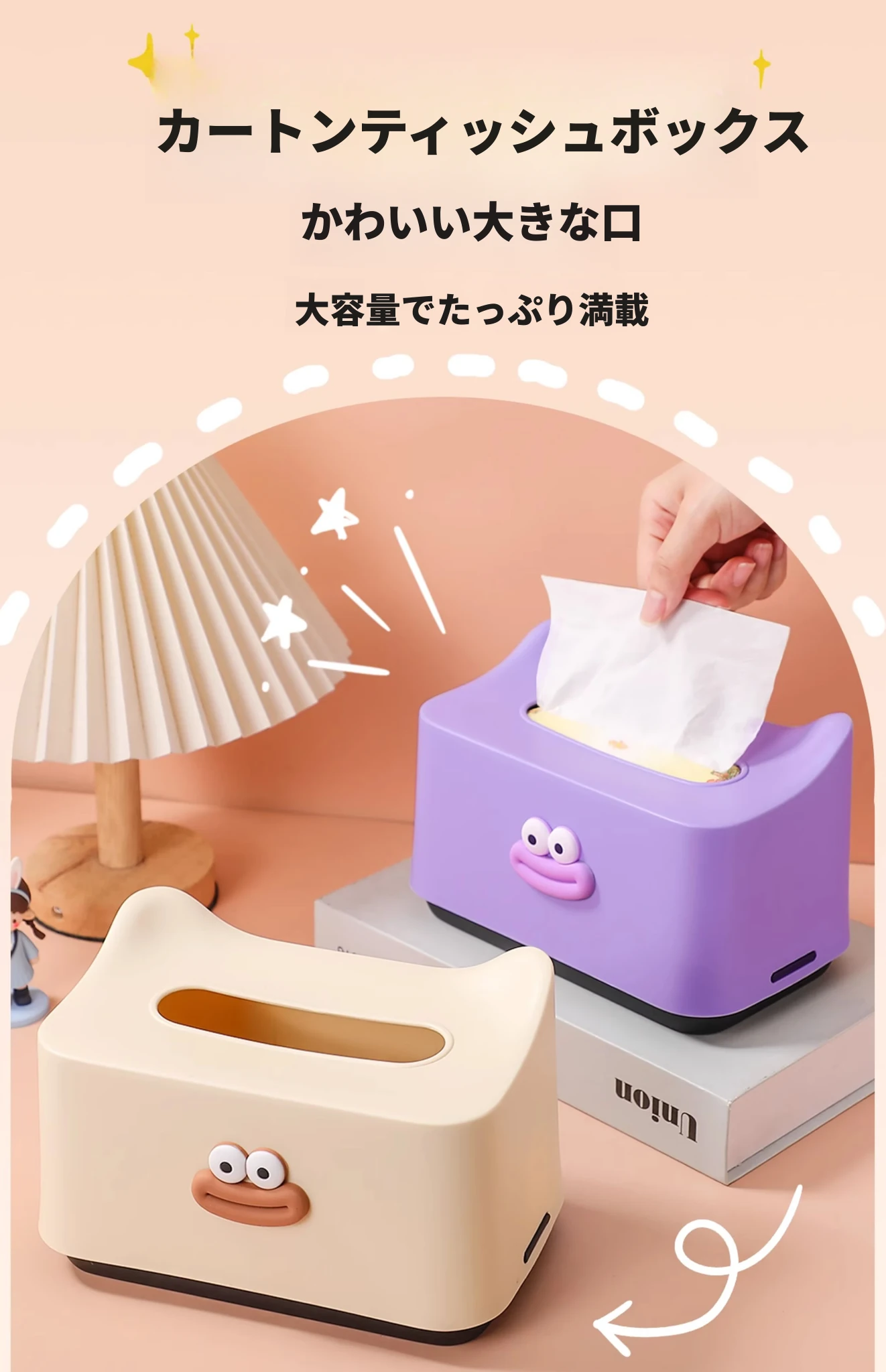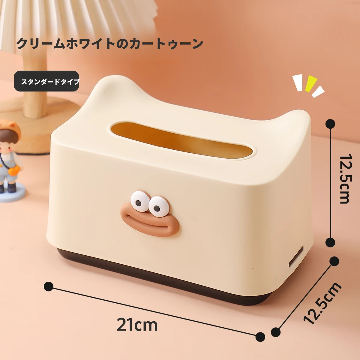 おしゃれで機能的なティッシュボックス - リビングやダイニングにぴったり!可愛いキャラクターデザインで、寝室のデスクにも最適。軽やかな高級感を演出し、収納にも便利なマルチユースアイテムです。