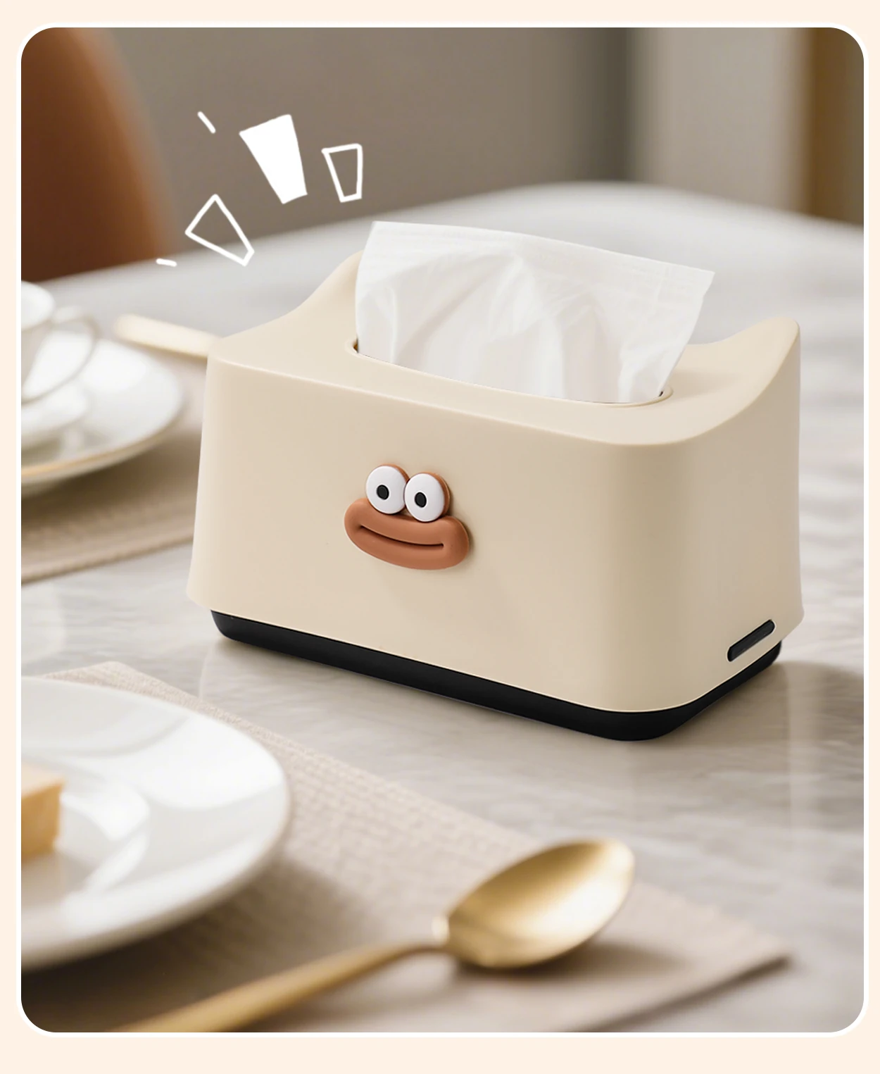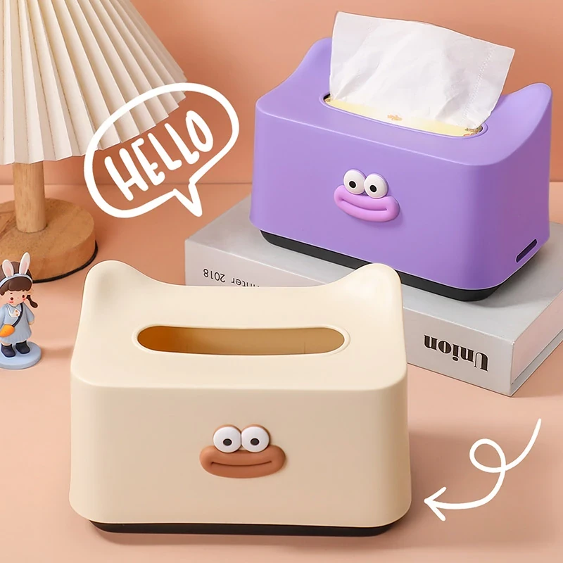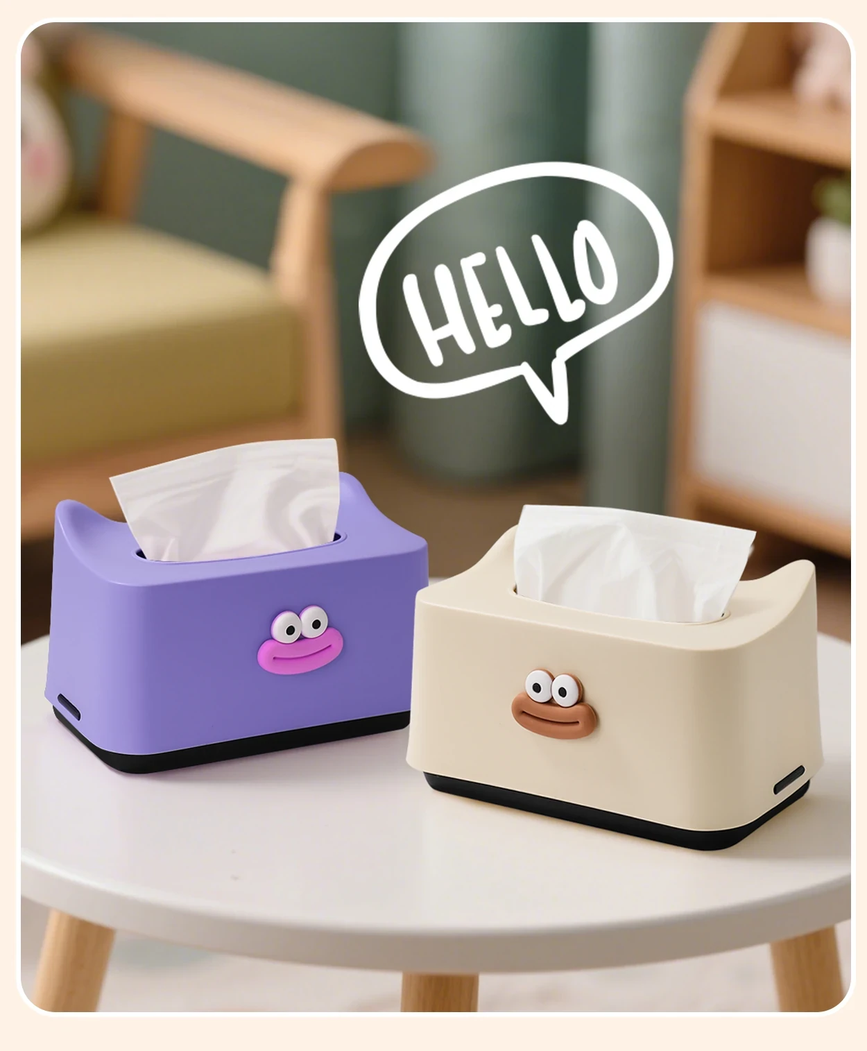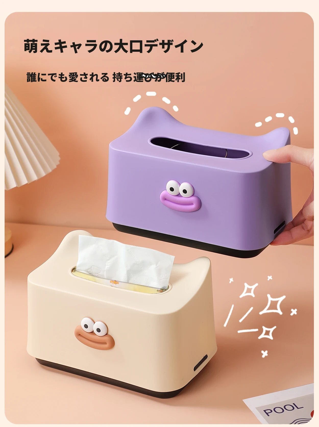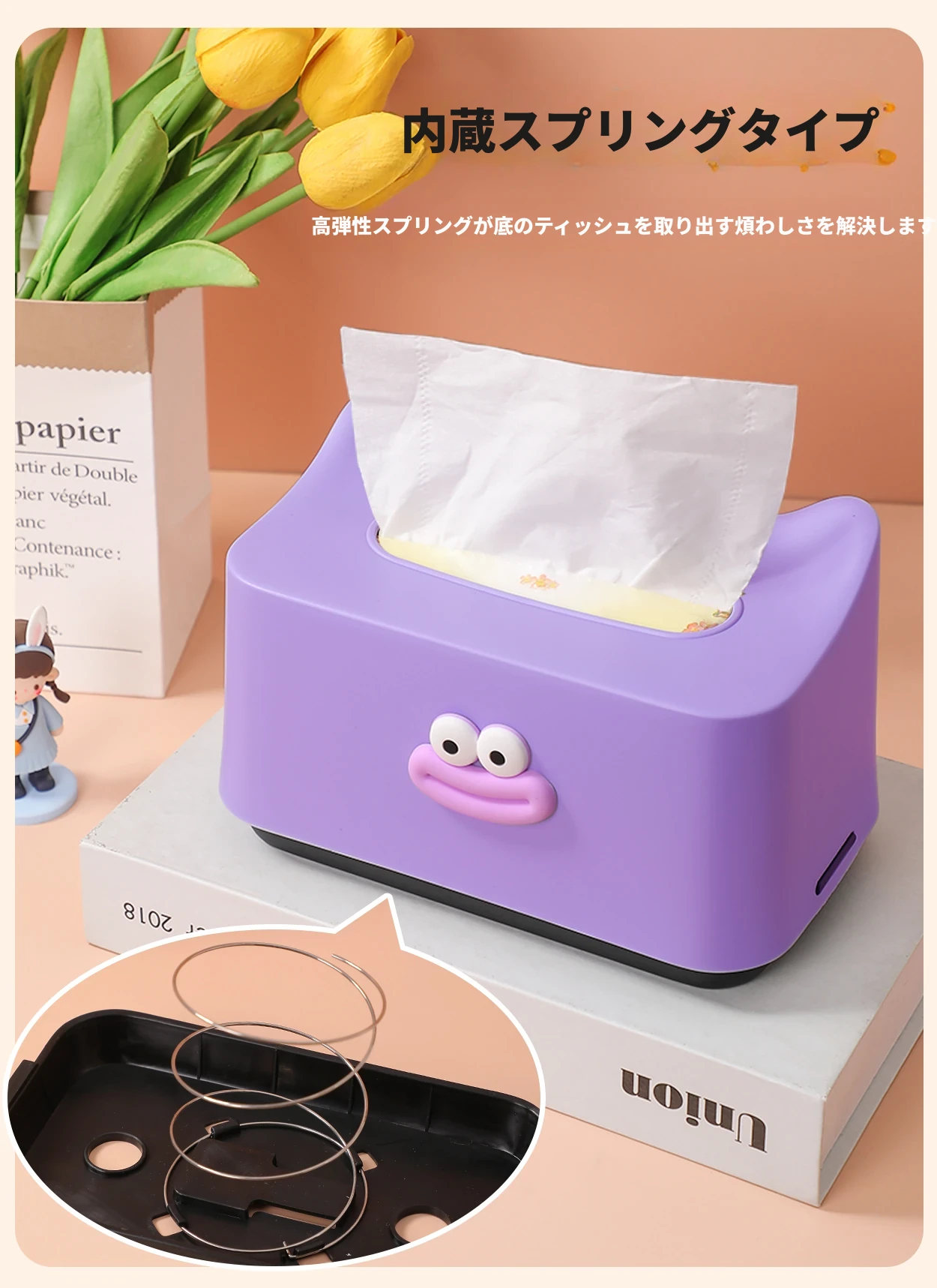 おしゃれで機能的なティッシュボックス - リビングやダイニングにぴったり!可愛いキャラクターデザインで、寝室のデスクにも最適。軽やかな高級感を演出し、収納にも便利なマルチユースアイテムです。