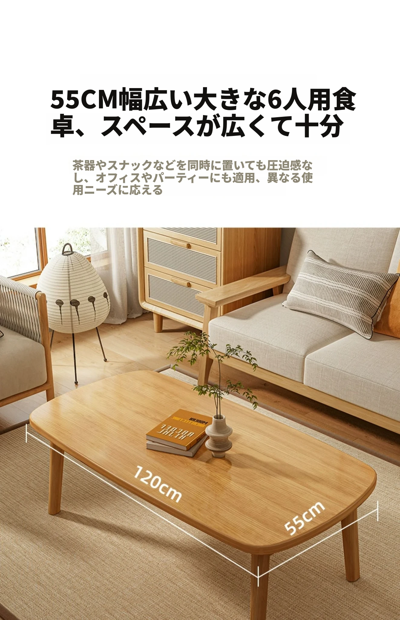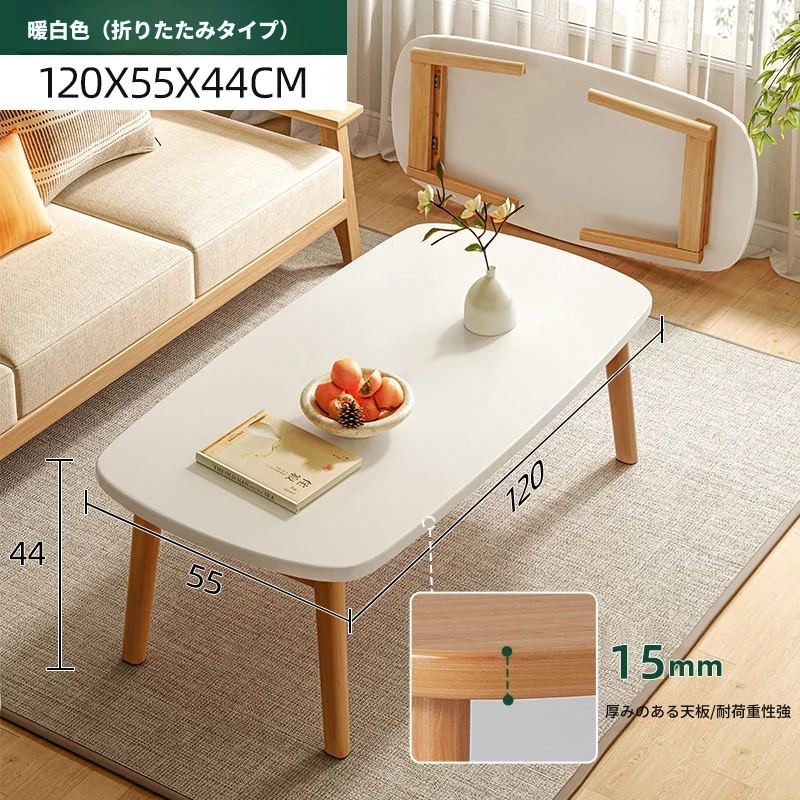 暖白色【120*55*44】折りたたみテーブル-無垢材の脚