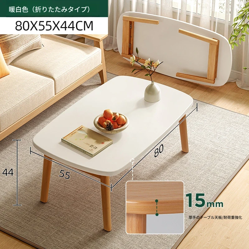 暖白色【80*55*44】折りたたみテーブル-無垢材の脚
