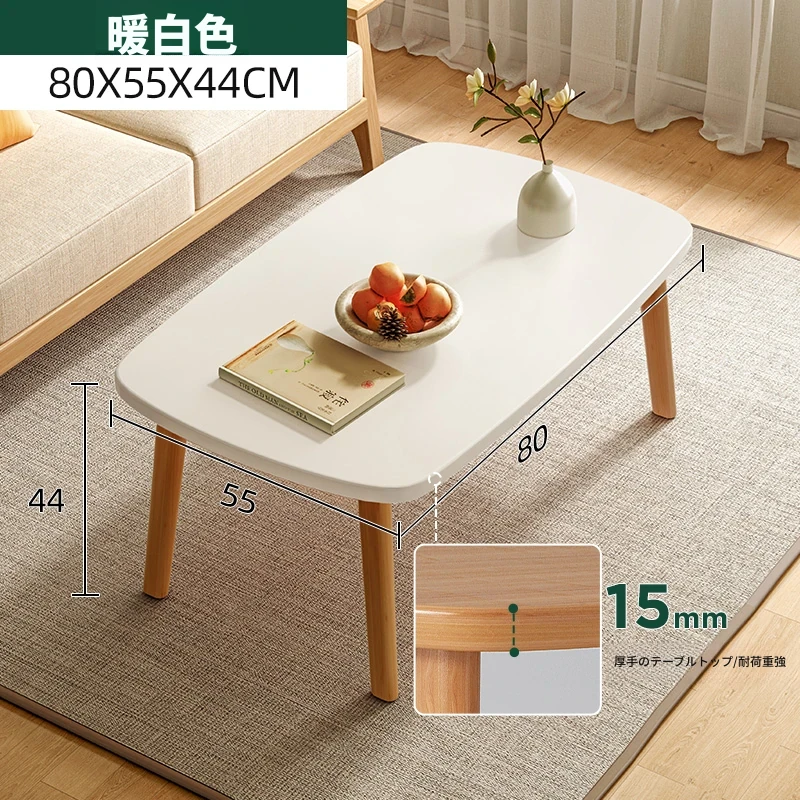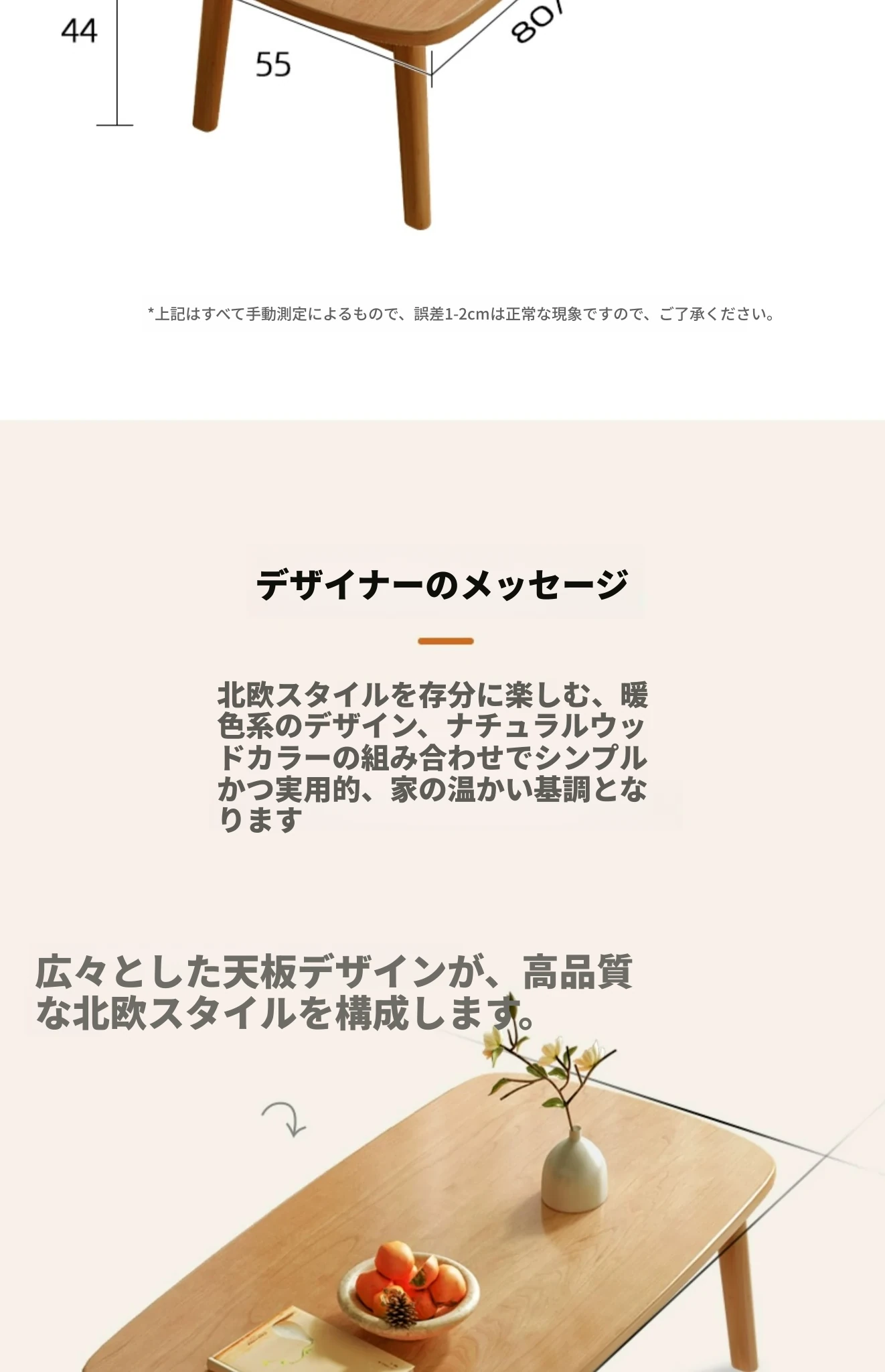 暖白色【80*55*44】折りたたみ不可テーブル-無垢材の脚