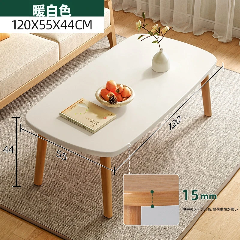 暖白色【120*55*44】折りたたみ不可テーブル-無垢材の脚