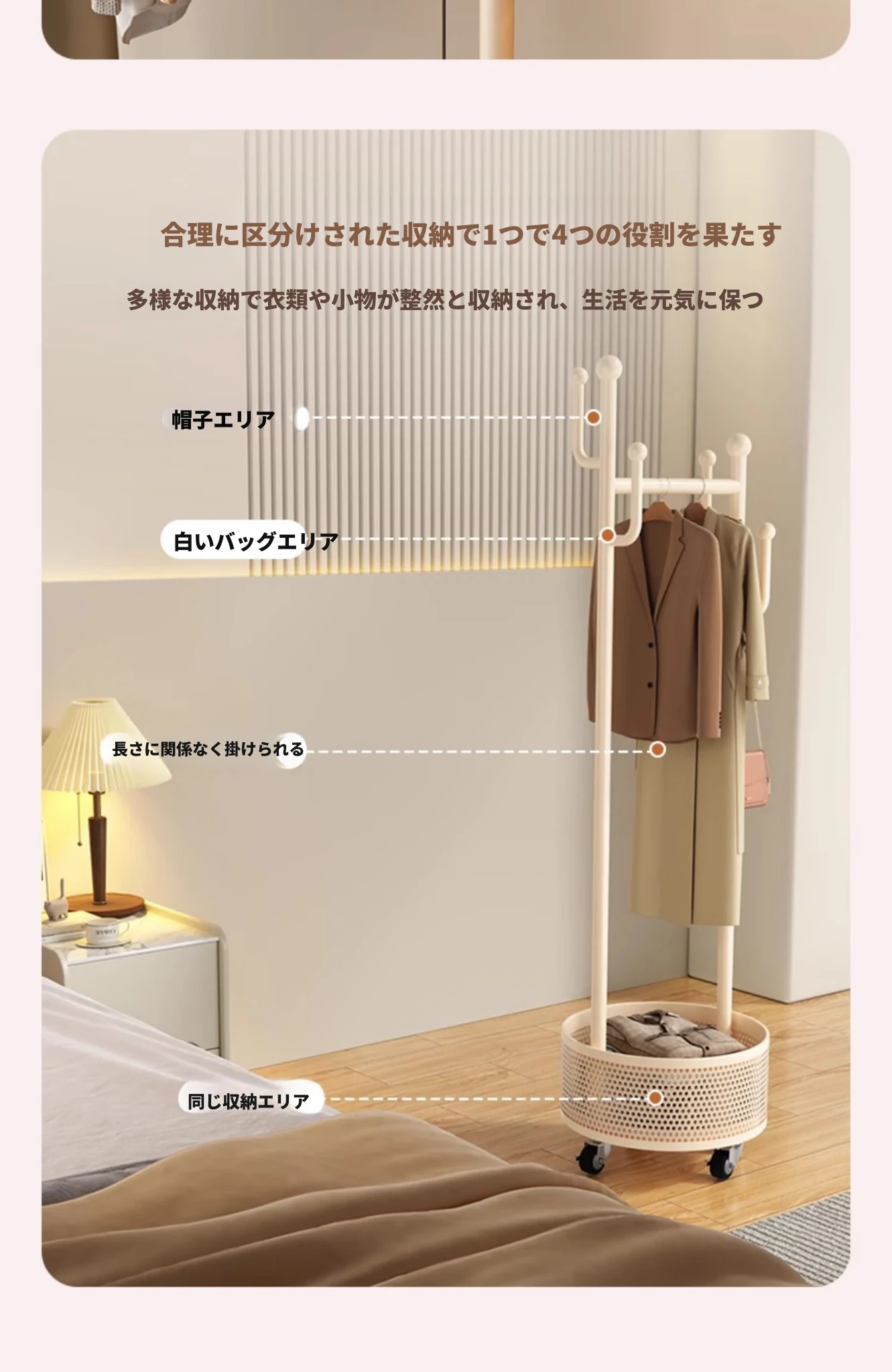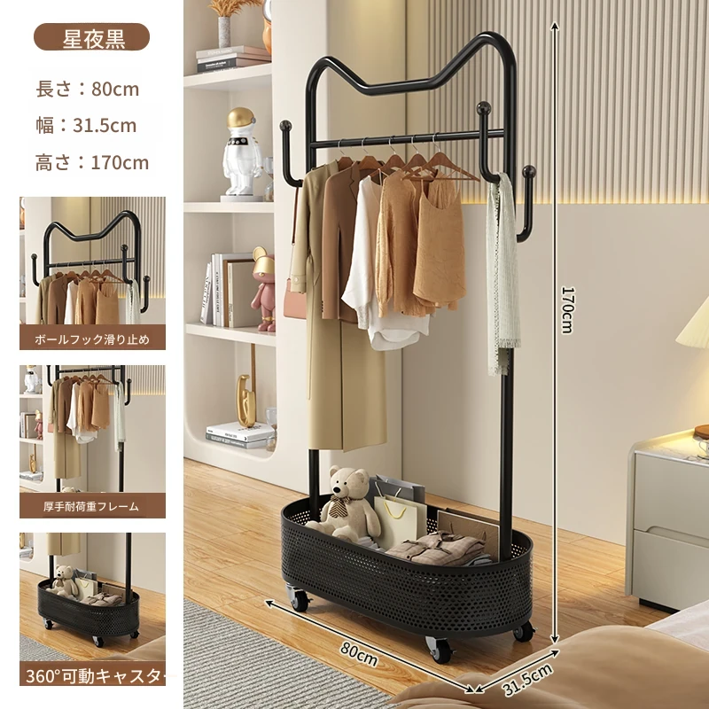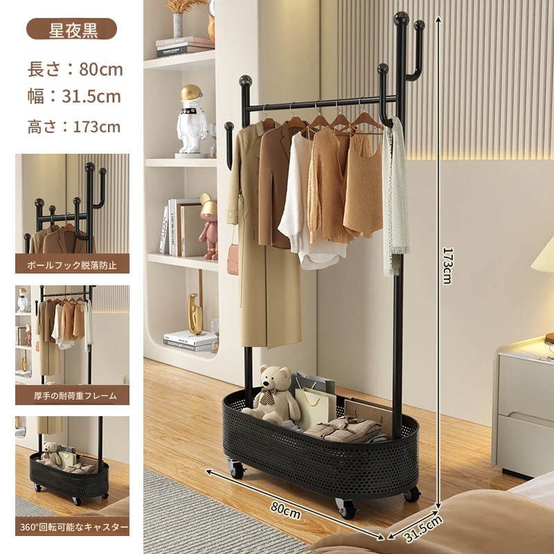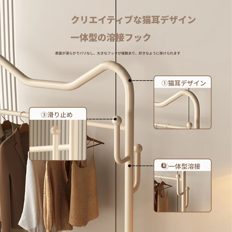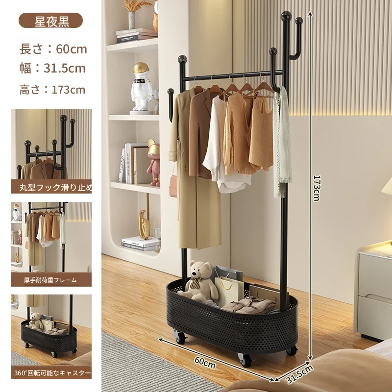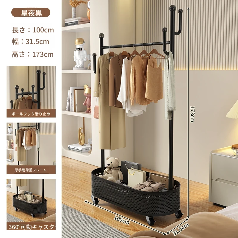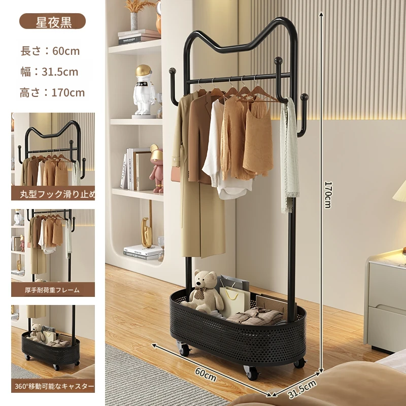 リビングや寝室に最適!移動可能な多機能ハンガーラック - ベッドサイドの衣類収納に最適な便利アイテム!おしゃれで実用的なコート掛けで、スッキリとした空間を実現!