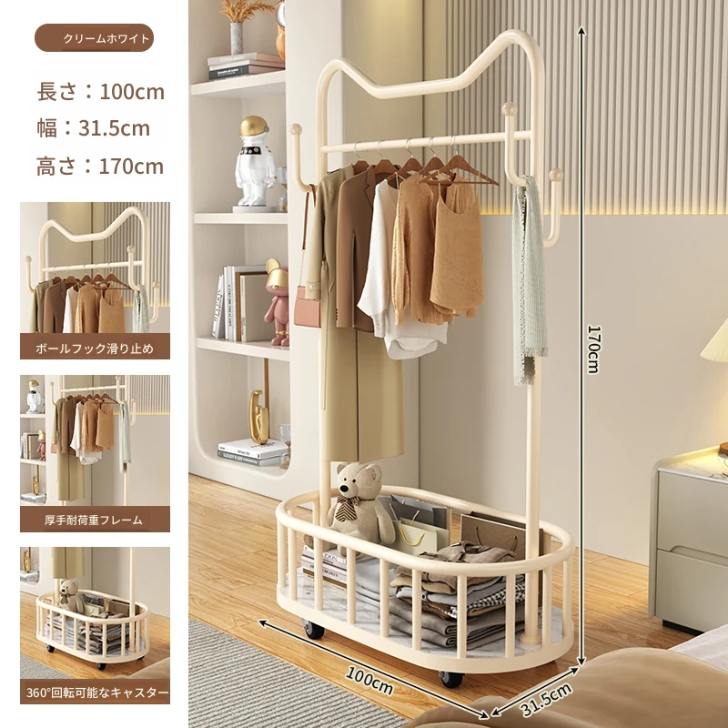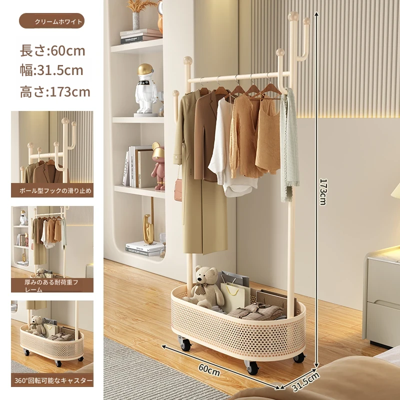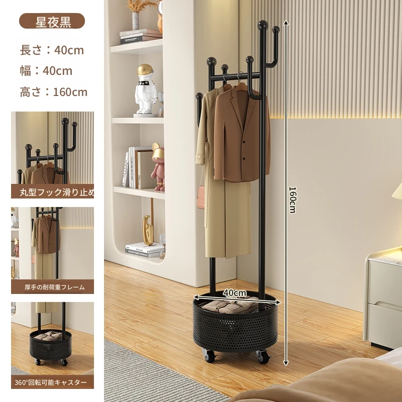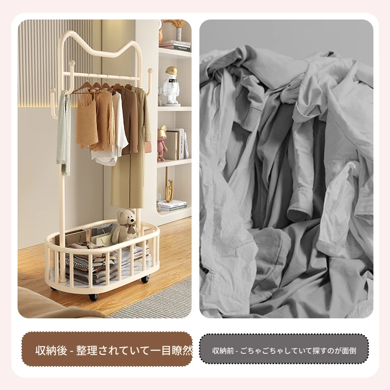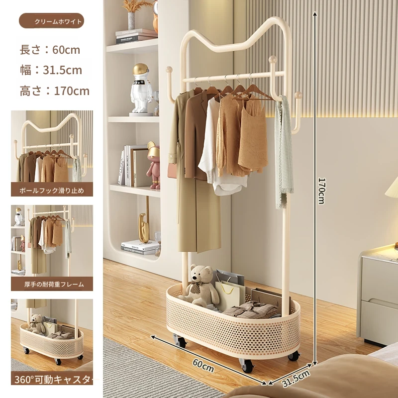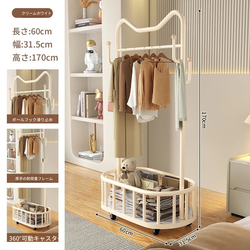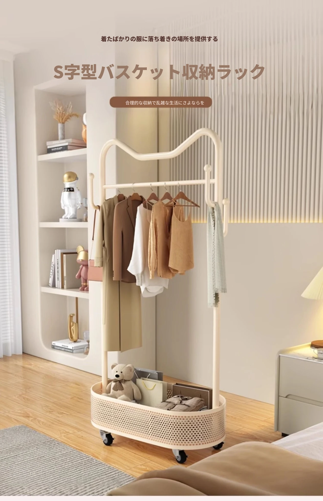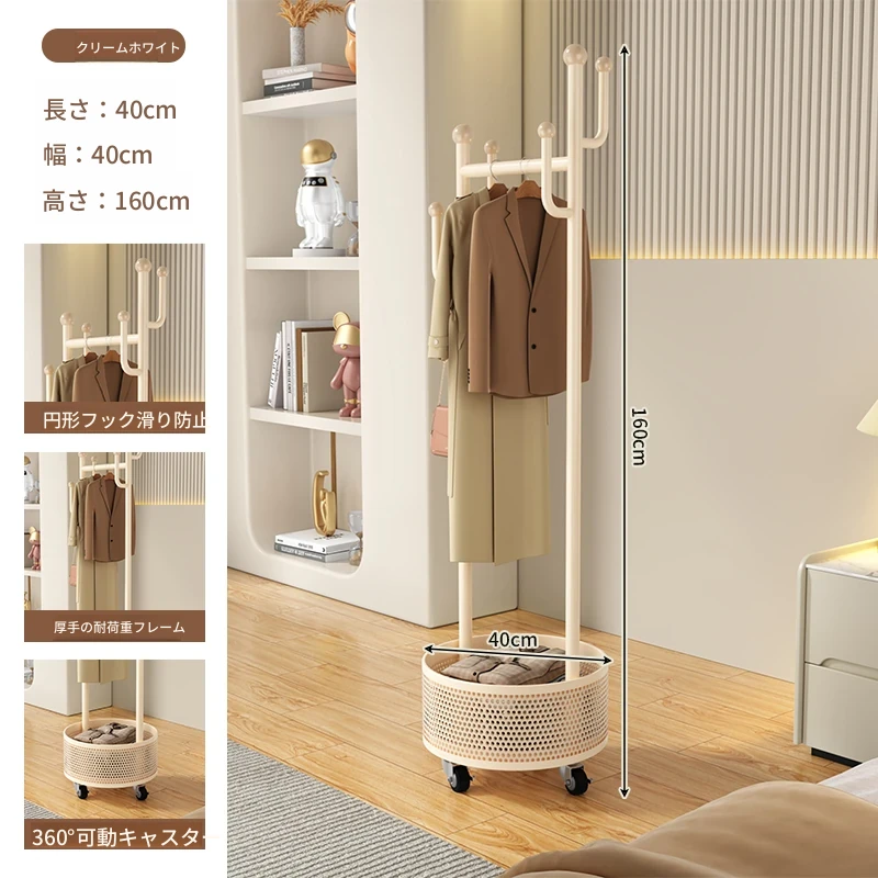 リビングや寝室に最適!移動可能な多機能ハンガーラック - ベッドサイドの衣類収納に最適な便利アイテム!おしゃれで実用的なコート掛けで、スッキリとした空間を実現!