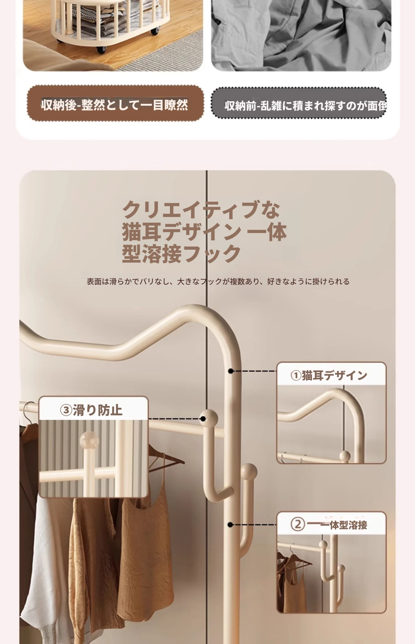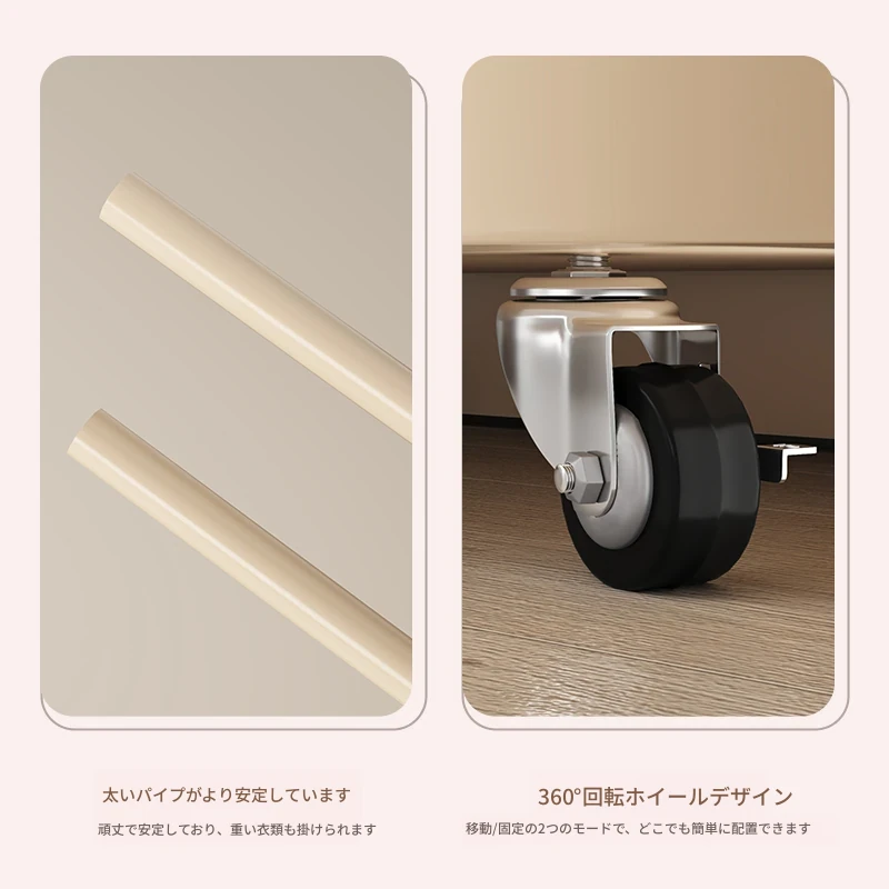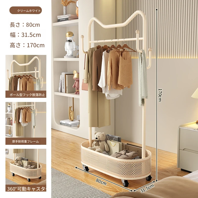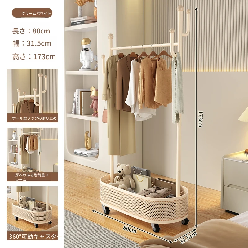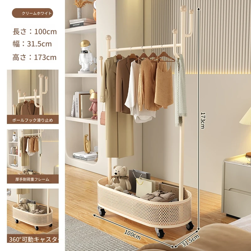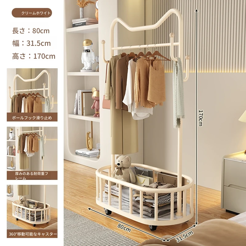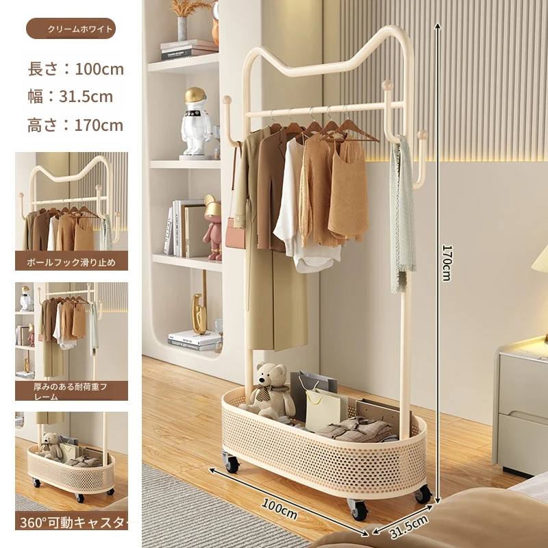 リビングや寝室に最適!移動可能な多機能ハンガーラック - ベッドサイドの衣類収納に最適な便利アイテム!おしゃれで実用的なコート掛けで、スッキリとした空間を実現!