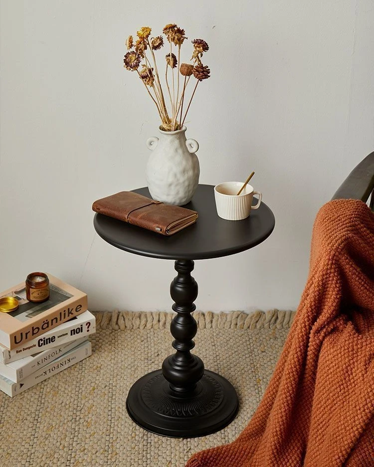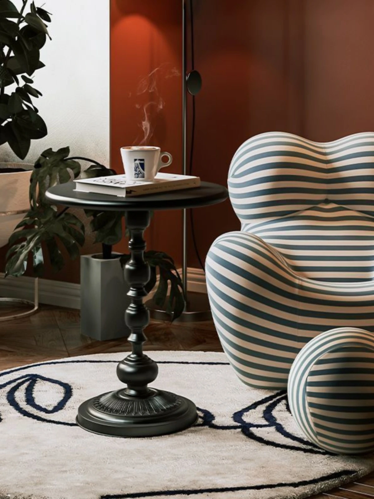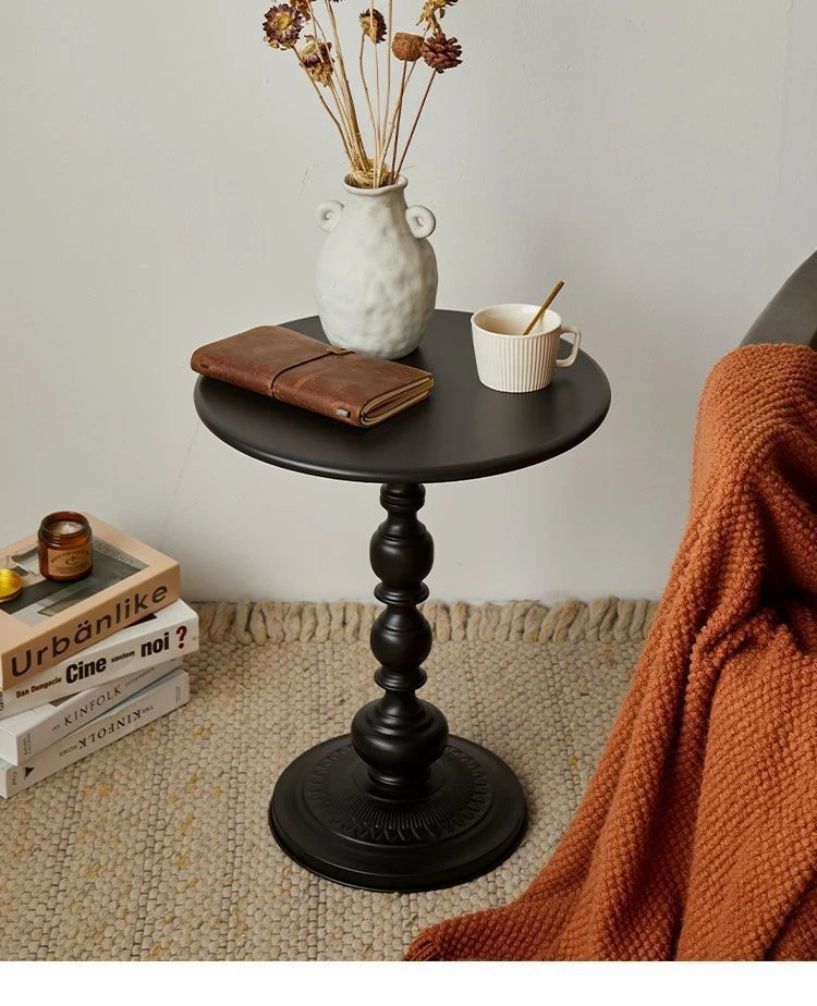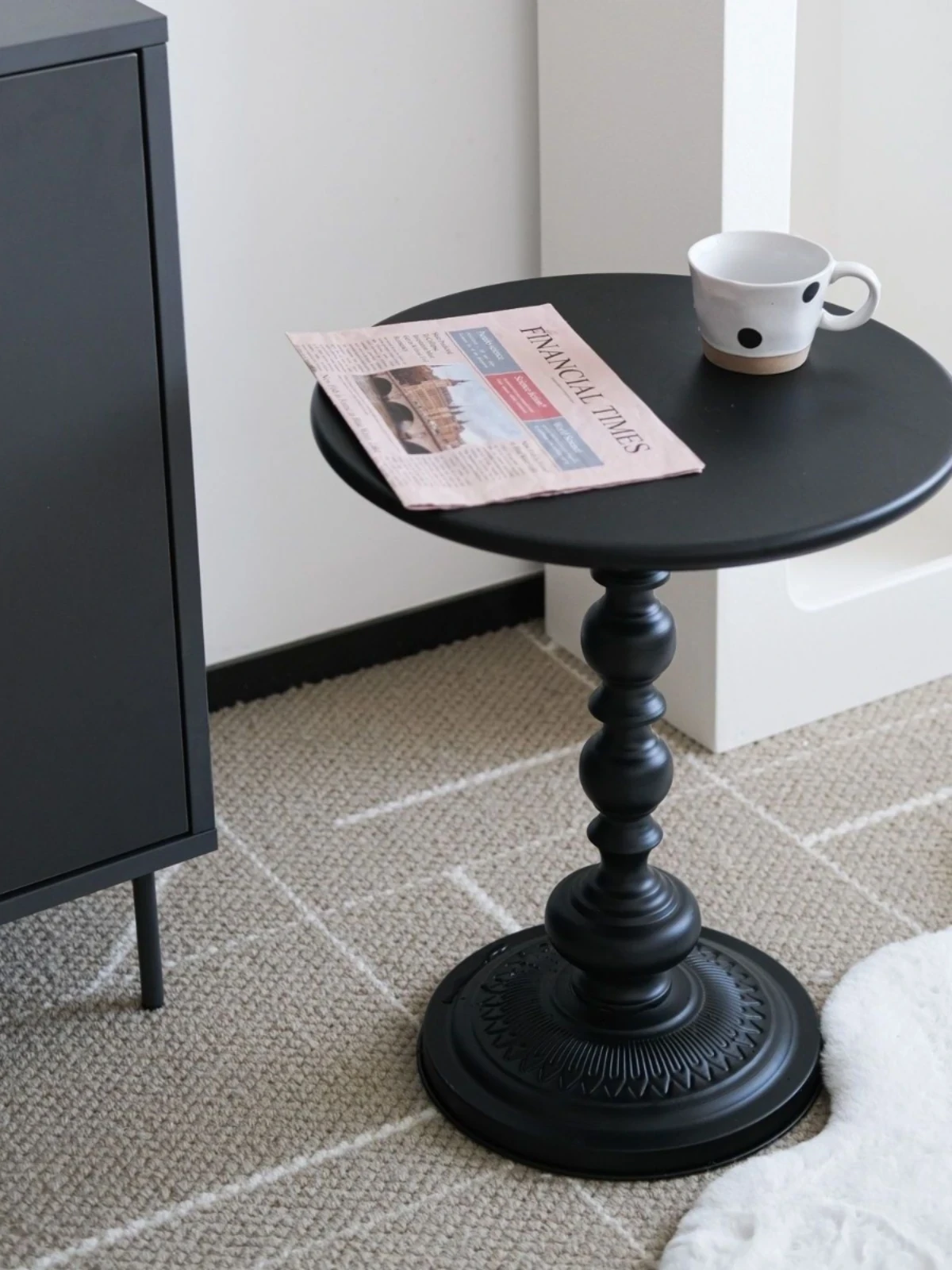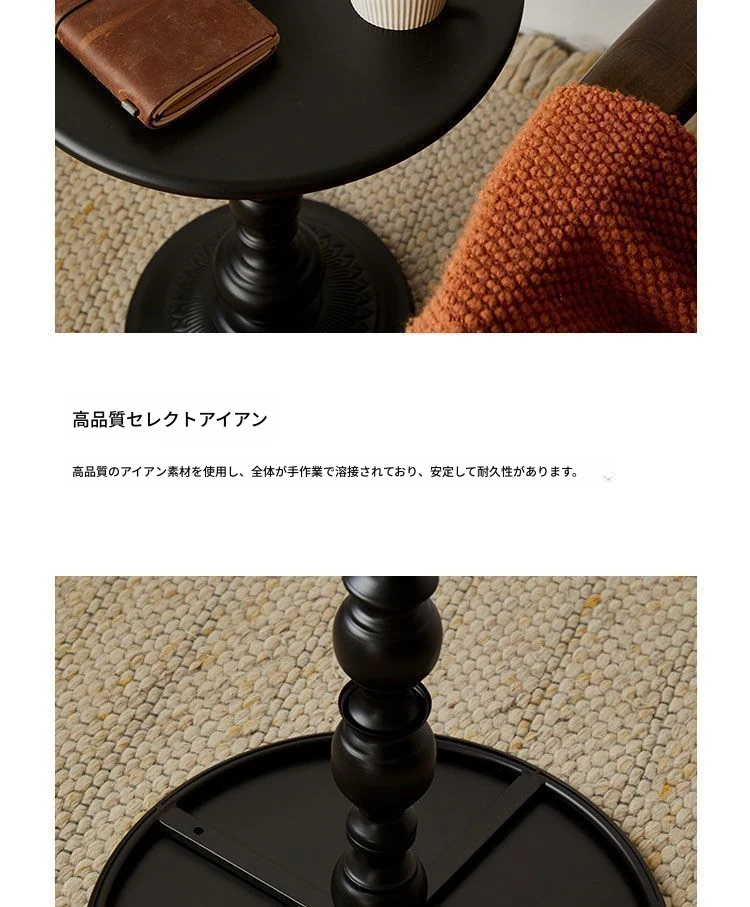 北欧スタイルのアイアン製リビングソファサイドテーブル - ヴィンテージ&ミニマルデザインの小さなティーテーブル。ラグジュアリー感漂うコンパクトなラウンドテーブル、狭いスペースにも最適なベッドサイドキャビネット。