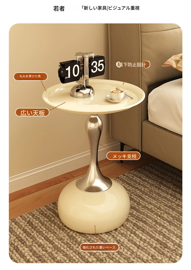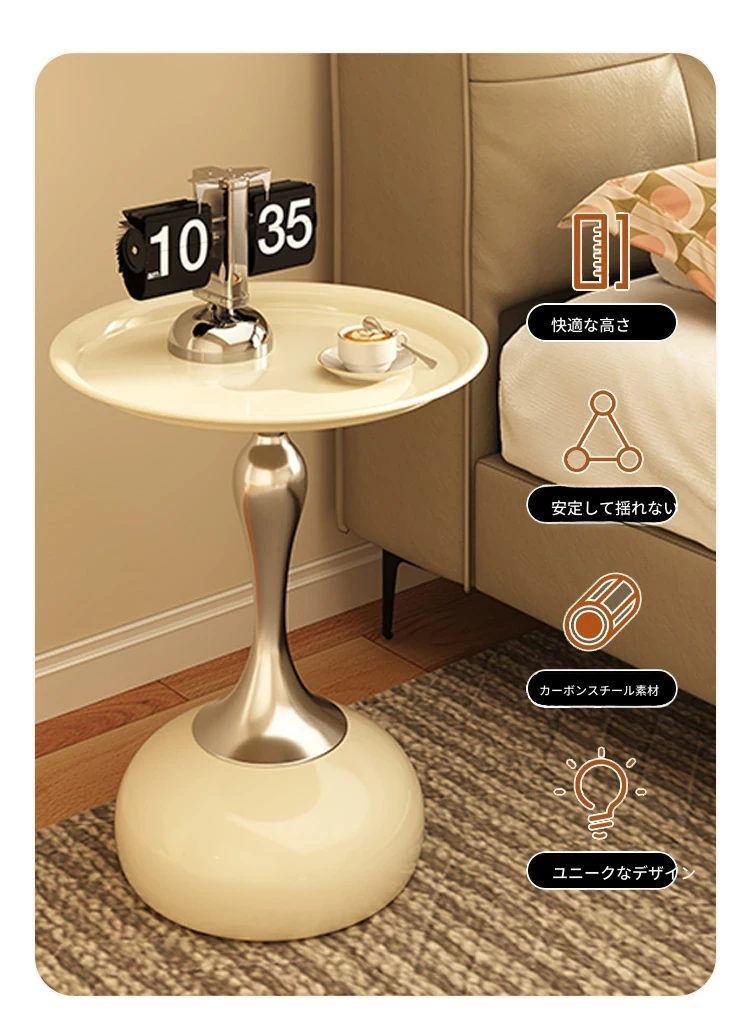 インスタ映えするミニテーブル!モダンでシンプルな小さな丸テーブル、ソファサイドやベッドサイドにぴったりの収納テーブル。アイアン製のスタイリッシュなナイトスタンド!お部屋をおしゃれに演出します!