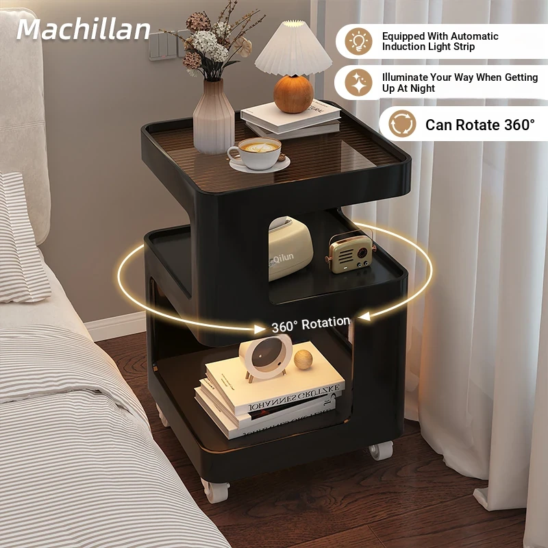 Stylish Movable Nightstand - Iron Side Table & Small Round Storage Rack for Bedroom, Living Room, or Sofa Side - Perfect Home Organizer & Space Saver!
