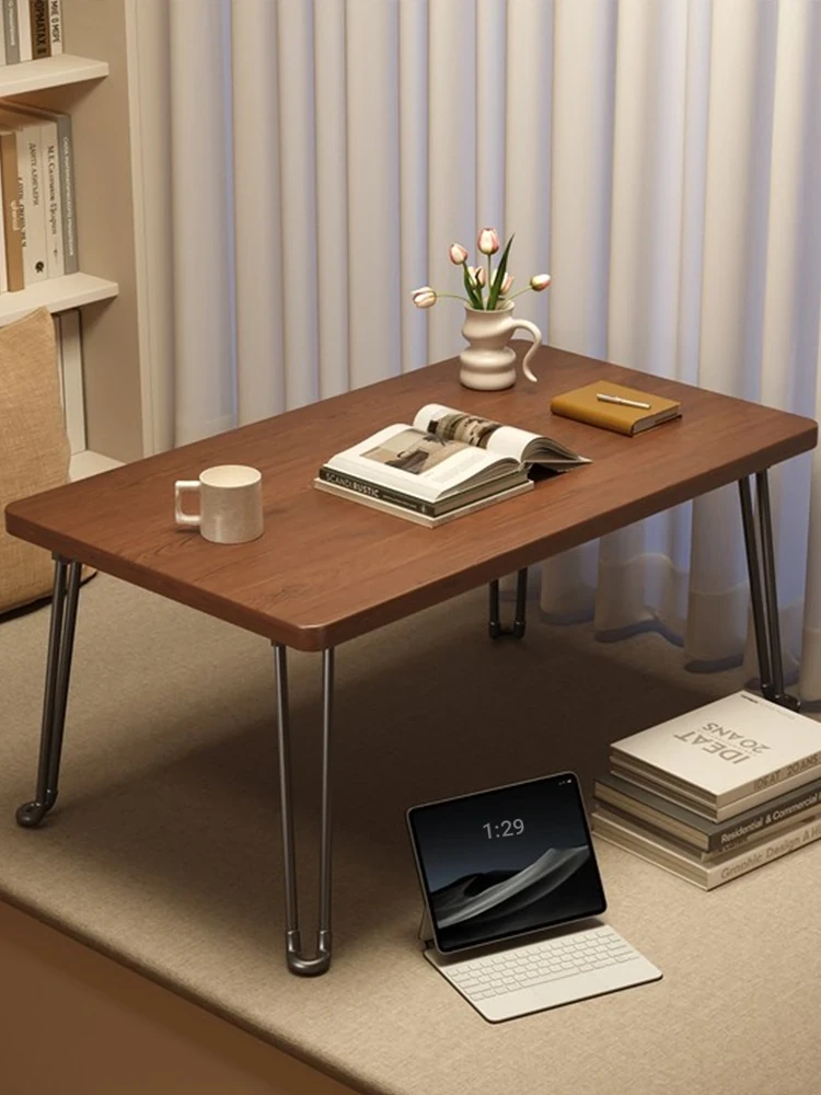 Elegant Chinese-Style Folding Tea Table - Vintage Window Seat Desk for Bedroom, Ground-Level Seating, Creative Balcony Zen Low Table