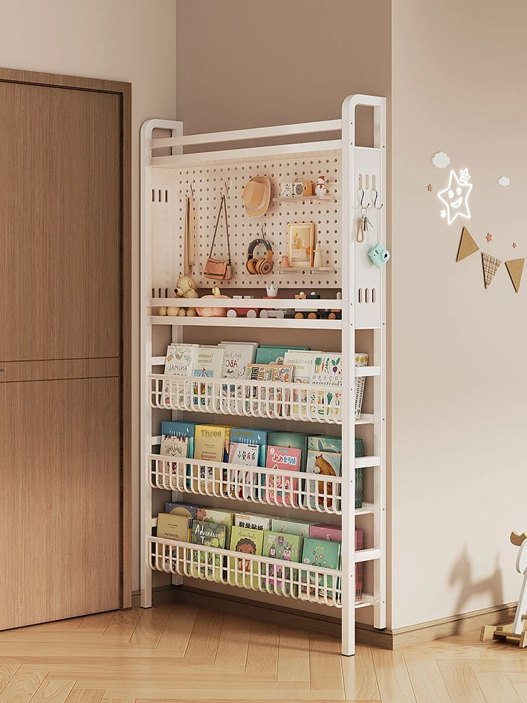 Slim Iron Perforated Storage Rack - Stylish Floor-standing Organizer with Wall Support, Perfect for Children's Books and Toys, Ideal for Space-saving Solutions