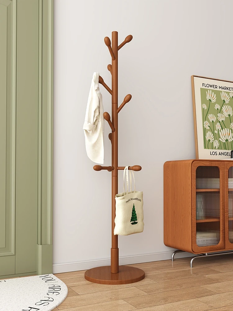 Solid Wood Freestanding Coat Rack - Elegant Bedroom Clothes Hanger, Simple Indoor Storage for Coats and Bags, Perfect for Home Organization