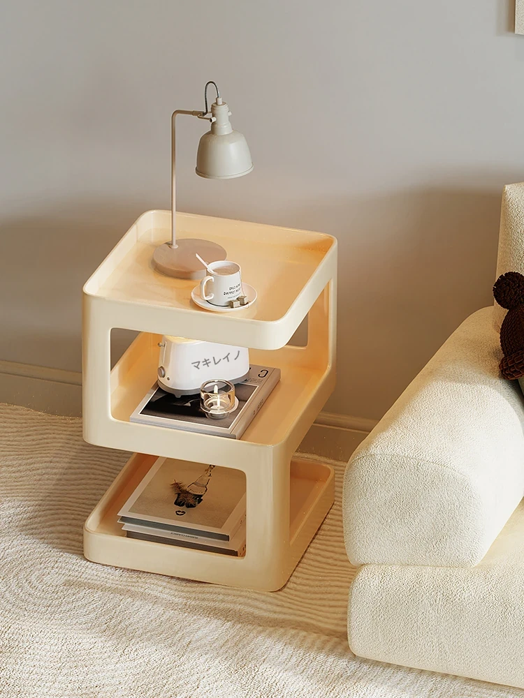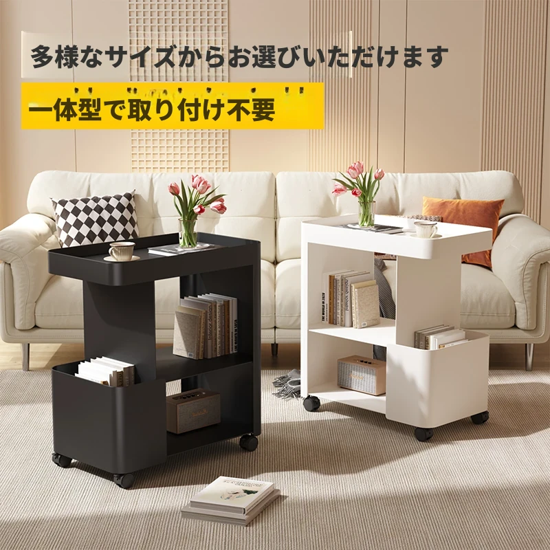 移動式クリーム風ソファサイドテーブル|ベッドサイドやリビングに最適!収納力抜群のアイアン製キャリーカート|おしゃれで便利な小茶卓!