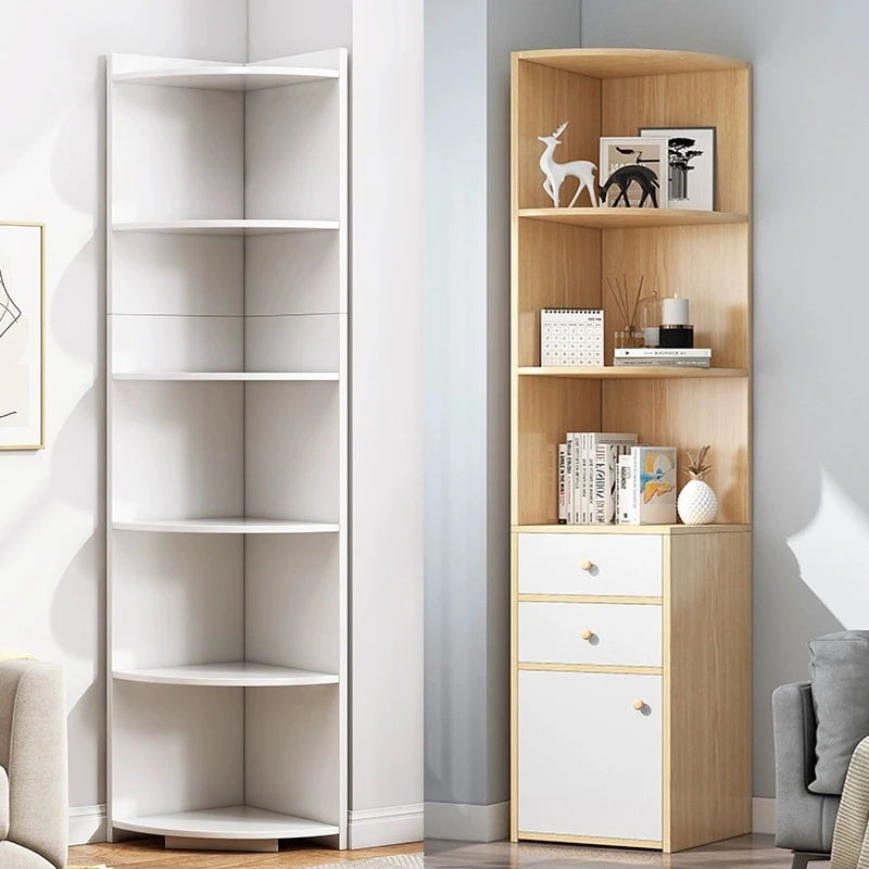 角にぴったり!おしゃれな三角形収納ラック - リビングや寝室に最適なウォールサイドコーナーキャビネットで、限られたスペースを有効活用!収納力抜群で、インテリアにも映えるデザイン。