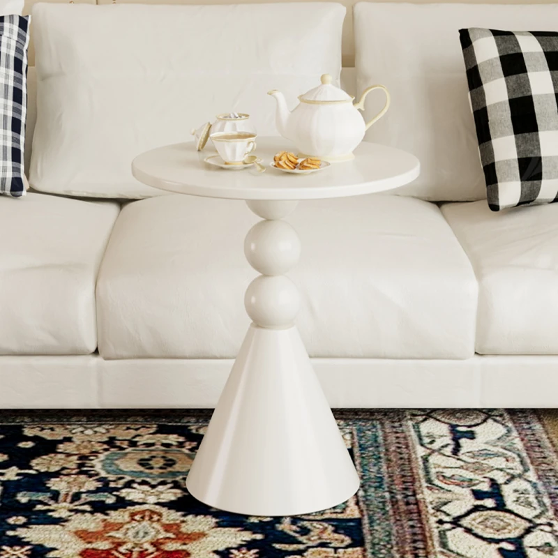 クリーム風北欧スタイルの小型リビングルーム用円形アートコーヒーテーブル - ソファにぴったりのホワイトエッジデザイン、シンプルでモダンなコーナーテーブル!あなたの空間に洗練された美しさを加えます。
