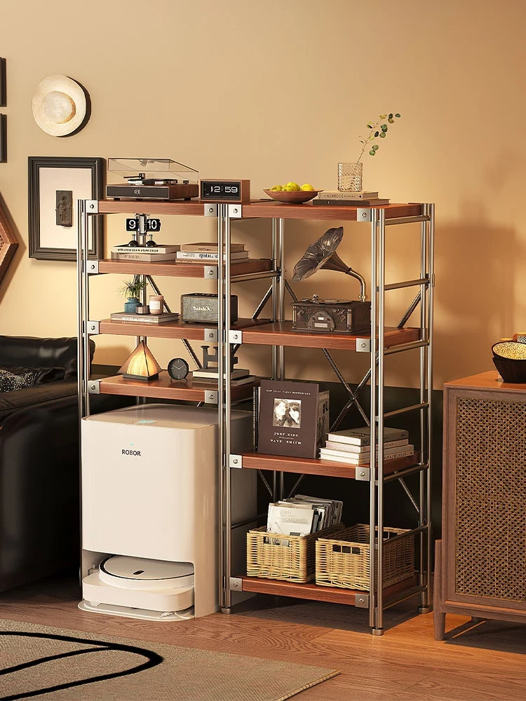 多機能ロボット掃除機用スタンド - 移動可能な多層デザイン!おしゃれな中古風の収納ラックで、寝室やリビング、洗濯機周りもスッキリ整理。あなたの生活空間をもっと快適に!