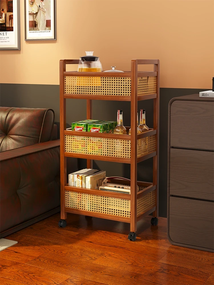 中古の小型ワゴン型スナック収納ラック - リビングに最適!移動可能なキャスター付きで、雑貨もスッキリ整理。シンプルで使いやすい収納棚で、快適な空間を実現します。